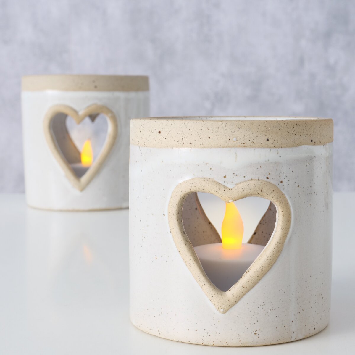 Zin in instant gezelligheid? Met deze Noomi waxinehouders van Boltze creëer je in één keer een warme, romantische sfeer in huis. De set bestaat uit 2 handgemaakte windlichten van stoneware met een matte afwerking en een hartvormige uitsparing. Zodra je er een waxinelichtje in zet, schijnt het kaarslicht zacht door het hartje heen… zó knus! ✨