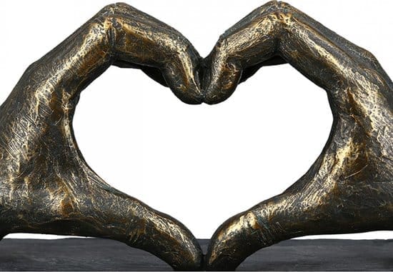 Herkenbaar sculptuur met een hartje, liefdevol gevormd uit twee handen.